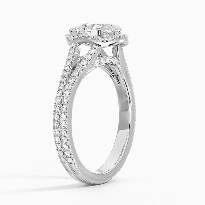 Le Solitaire Halo Poire Demi-Tour est une bague de fiançailles d’exception, conçue pour capturer la lumière sous tous les angles. Son cadre raffiné met en avant un halo d’accents de diamants qui s’incurve gracieusement autour de la gemme centrale, créant un effet visuel spectaculaire et distinctif.