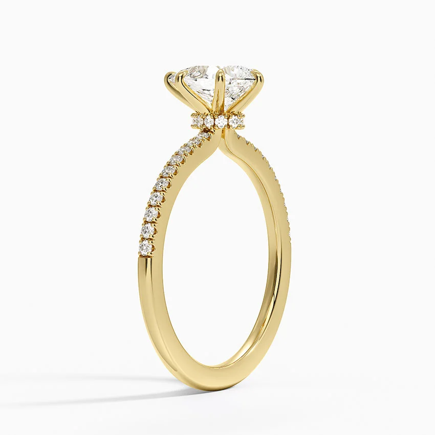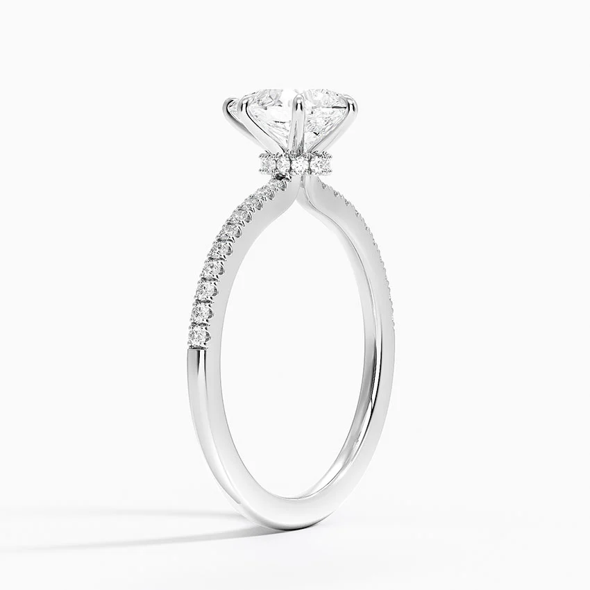 Le Solitaire Poire Demi-Tour est une bague de fiançailles d’exception, alliant raffinement et éclat intemporel. Son design élégant met en avant un halo scintillant de diamants dissimulés autour du diamant poire central, sublimant son éclat avec une brillance incomparable.